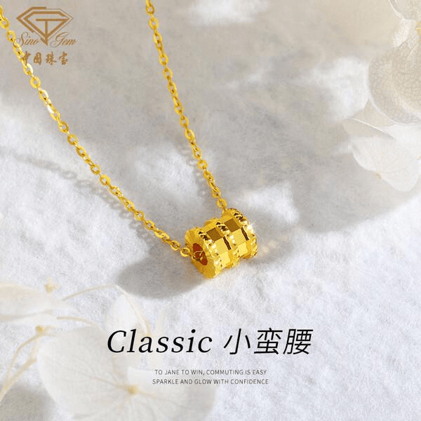这款中国珠宝的足金黄金套链,真的是让人眼前一亮,采用优质的足金材质,具备细腻的质感。简约优雅的小蛮腰设计,加上几何圆筒造型,搭配那亮眼的漩珠边,简直如钻石般闪耀,能够很好地提升女性的时尚气质。