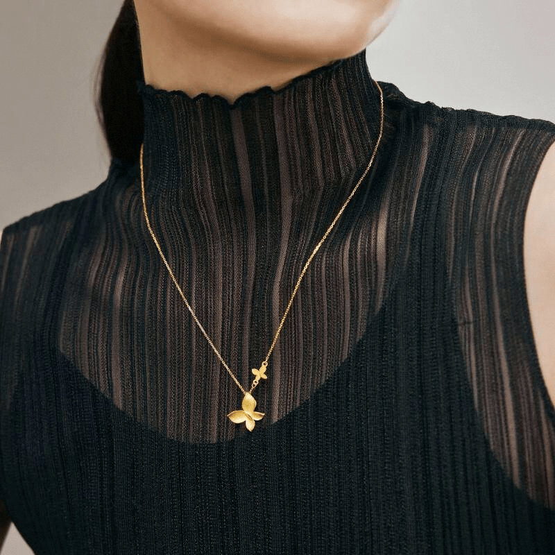 项链的总重量约为4.75克,搭配的蝴蝶吊坠尺寸约为1.6cm x 1.6cm,设计时尚且不失精致。链长约为47厘米,适中长度让佩戴效果恰到好处,无论是日常出门还是作为礼物,均能轻松搭配不一样的风格的服装,增添个人魅力。
